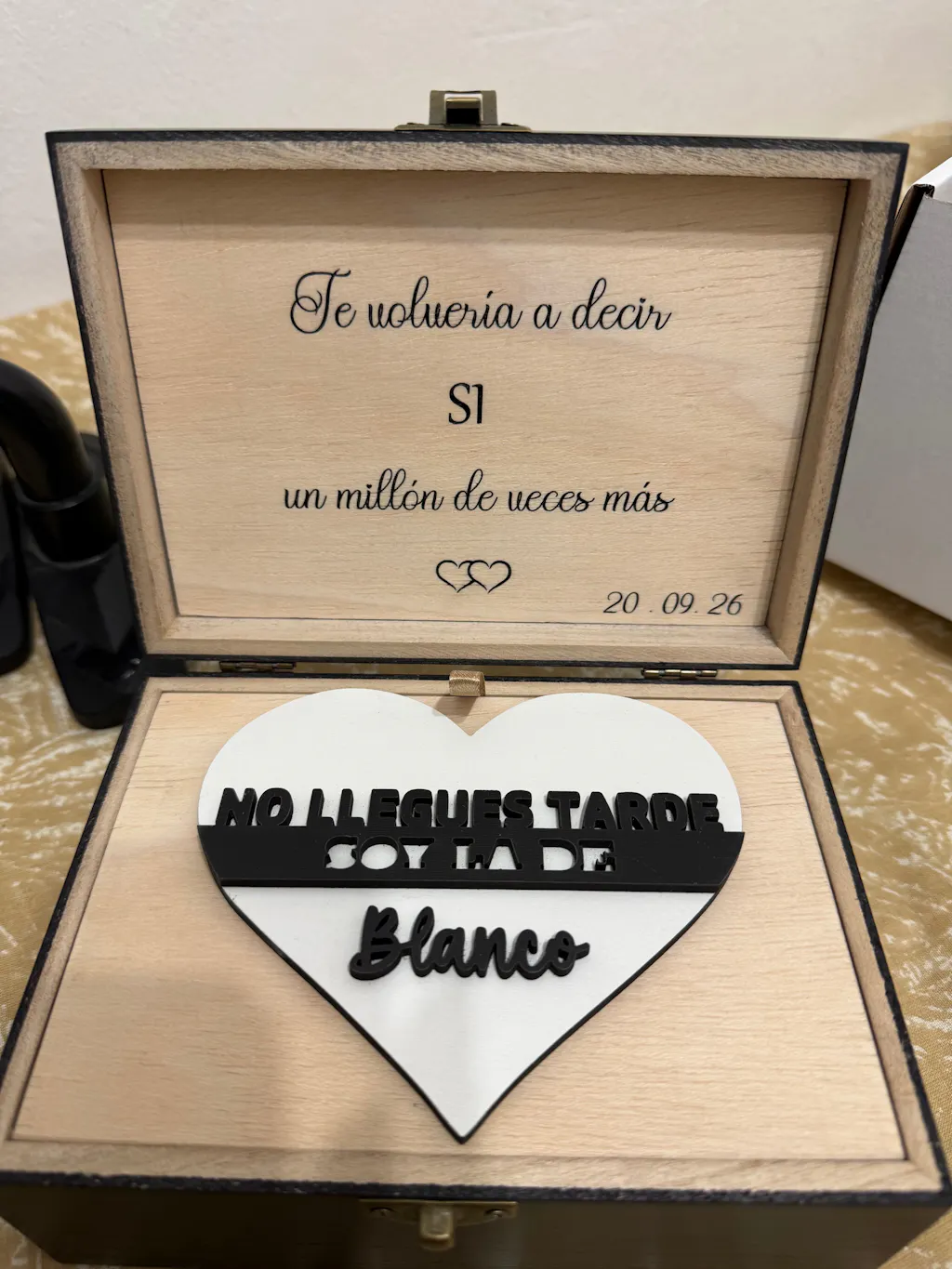 -Frase Interior del reloj: Este reloj marca el inicio de una nueva etapa juntos. Si volviera a nacer intentaría encontrarte antes. Te quiero.